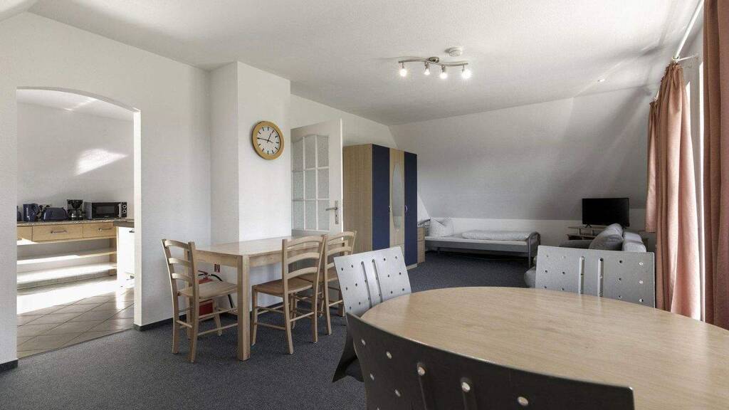 Die Küche ist zum Wohnraum durch einen offenen Eingang abgegrenzt. Für jedes Schlafzimmer stehen bequeme Betten zur Verfügung. Das Vollbad verfügt Badewanne und Dusche.