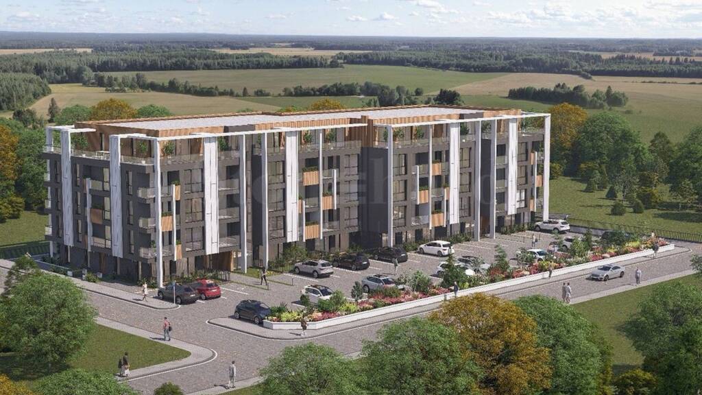 Das Gebäude erstreckt sich über fünf Etagen mit funktional verteilten Ein-, Zwei- und Dreizimmerwohnungen mit einer Fläche von 39,75 bis 197,85 m². Die Wohnungen im Erdgeschoss verfügen über einen privaten Innenhof. Der Komplex verfügt über zwei separate Eingänge mit kontrolliertem Zugang, Aufzüge, offene Parkplätze und Tiefgaragen.