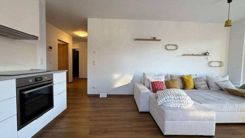 Ausstattungshighlights: •Hochwertige Bauausstattung: Die Wohnung besticht durch erstklassige Materialien und eine durchdachte Raumgestaltung. •Hohe Sicherheit: Ein modernes Videosystem sorgt für Ihr Wohlbefinden und die Sicherheit Ihrer Liebsten. •Große Terrasse mit Bergblick: Verbringen Sie entspannte Stunden auf Ihrer großzügigen Terrasse mit traumhaftem Blick auf die umliegenden Berge. •Moderne Küche: Die ausgestattete Küche ist inklusive aller Geräte und lädt zum Kochen und Genießen ein. •Technische Features: Wandlampen, elektrische Rollos und eine elektrische Markise machen Ihr Leben noch bequemer. •Parkmöglichkeit: ein überdachter Stellplatz, stehen Ihnen zur Verfügung. •Abstellraum: Zusätzlicher Stauraum ist durch einen ebenerdigen Lagerraum gegeben. •Energieeffizienz: Die Wohnung überzeugt mit einem niedrigen Energiewert, unterstützt durch eine moderne Luftwärmepumpe mit Photovoltaikanlage. •Komfort durch Fußbodenheizung: Eine Fußbodenheizung mit individuellem Raumthermostat sorgt für wohlige Wärme in jedem Raum. •Hausmeisterservice: Die Reinigungsarbeiten werden durch einen internen Hausmeister übernommen.