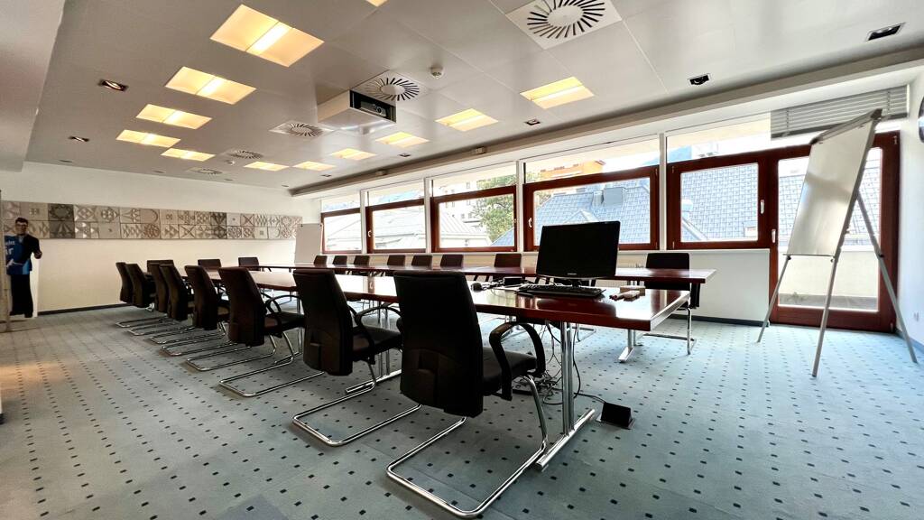 - Ca. 552 m² Nutzfläche (auch teilbar) - 10 Räume zur individuellen Nutzung - 1 Personenaufzug - Voll ausgestattete moderne Küche - Geräumiger Aufenthaltsraum - Serverraum und EDV-Verkabelung (KAT 7) vorhanden - 3 separate WC´s - Große schöne nach Westen ausgerichtete Dachterrasse - 2019: Austausch aller Fenster - Zentrumslage