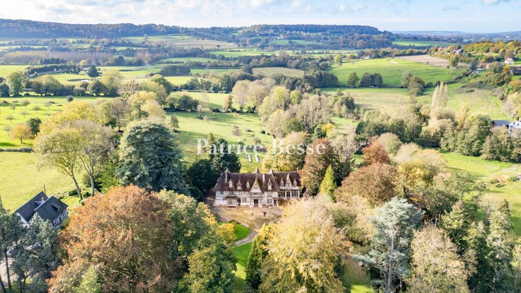 This property, approximately 6 km from Pont-l'EvĂŞque and a junction on the A13 motorway, stands on the side of a slope by which flows a stream that runs into the River Touques. There are uninhibited views in this small valley running from east to west, with few crops and plenty of pastureland. It is perpendicular to its larger neighbour, the Touques Valley, which emerges onto the CĂ´te Fleurie coast with its coastal resorts and holiday towns.