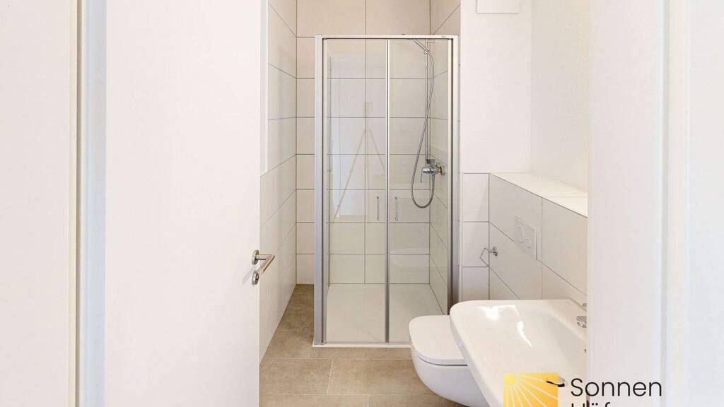 Über den Flur gelangt man direkt in den Wohn- und Essbereich welcher Zugang zur Loggia bietet. Die Küche ist mit einem offenen Durchgang zum Essbereich separiert. Vom Wohnbereich kommt man zum Schlafzimmer und zum modernen Duschbad.