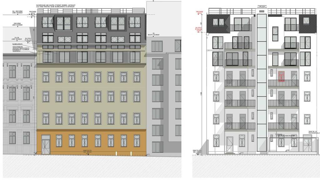 Auf einem wunderschönen Altbau unweit des Siebenbrunnenplatzes entstehen aktuell drei neu errichtete Stockwerke (4.-6. Stock), die jeweils zwei großzügige Wohnungen mit hochwertiger, schlüsselfertiger Ausstattung bieten. Im Zuge der Aufstockung wird das Gebäude umfassend modernisiert (Aufzug, Stiegenhaus, Fassade, Balkone, Keller) und technisch sowie optisch auf einen zeitgemäßen Standard gebracht.