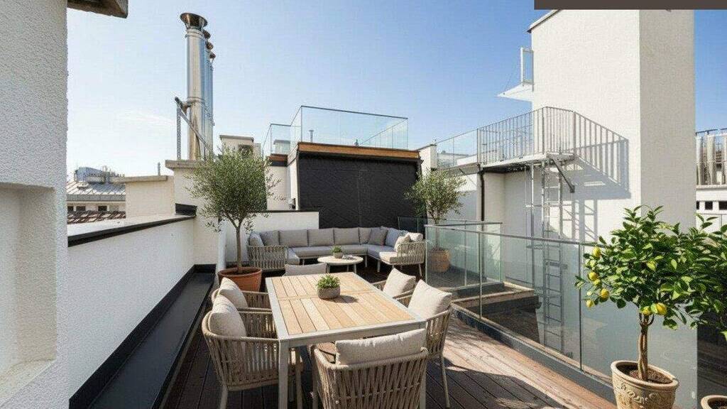 Diese eindrucksvolle Dachgeschosswohnung vereint auf rund 132,40 m² Wohnfläche großzügige Dimensionen, elegante Ausstattung und ein Höchstmaß an Wohnkomfort. In Kombination mit der weitläufigen Terrasse mit ca. 33,05 m² entsteht ein außergewöhnliches Zuhause für Menschen mit Sinn für Ästhetik, Qualität und diskreten Rückzugsraum.