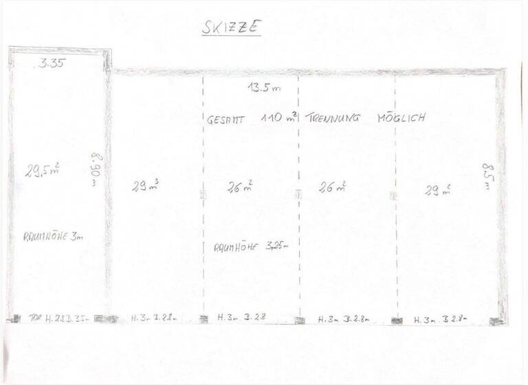 Die Garagen sind bisher noch nicht abgetrennt da Sie mehrere Garagen zusammen mieten können. Auf Wunsch oder bei Einzelvermietung werden natürlich Trennwände eingezogen!
