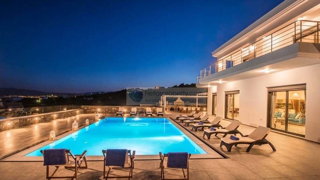 Diese luxuriöse Villa mit einer Wohn-/Nutzfläche von 307 m² liegt in einer einzigartigen Lage, nur 400m vom Strand und 3km vom Zentrum von Agios Nikolaos entfernt.
