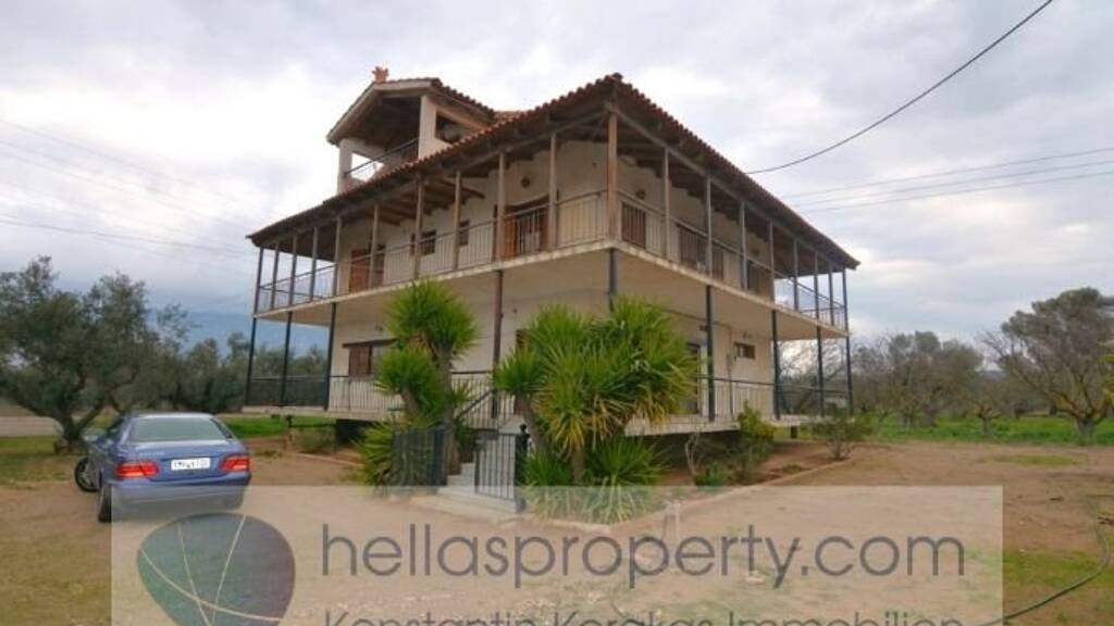In einer ruhigen Gegend außerhalb von Loutraki (6 km) steht dieses Einfamilienhaus mit ca. 330 m² Wohnfläche, auf einem Grundstück von 6.750 m².