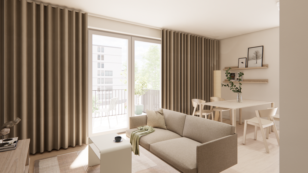 Unsere Studio Plus Large Apartments im Calm Design vereinen Großzügigkeit und Designbewusstsein. Diese Studios sind in Größen von 39,5 bis 46,5 m² verfügbar. Helle Räume, natürliche Materialien und eine ausgewogene Farbgebung schaffen ein elegantes Wohnambiente.