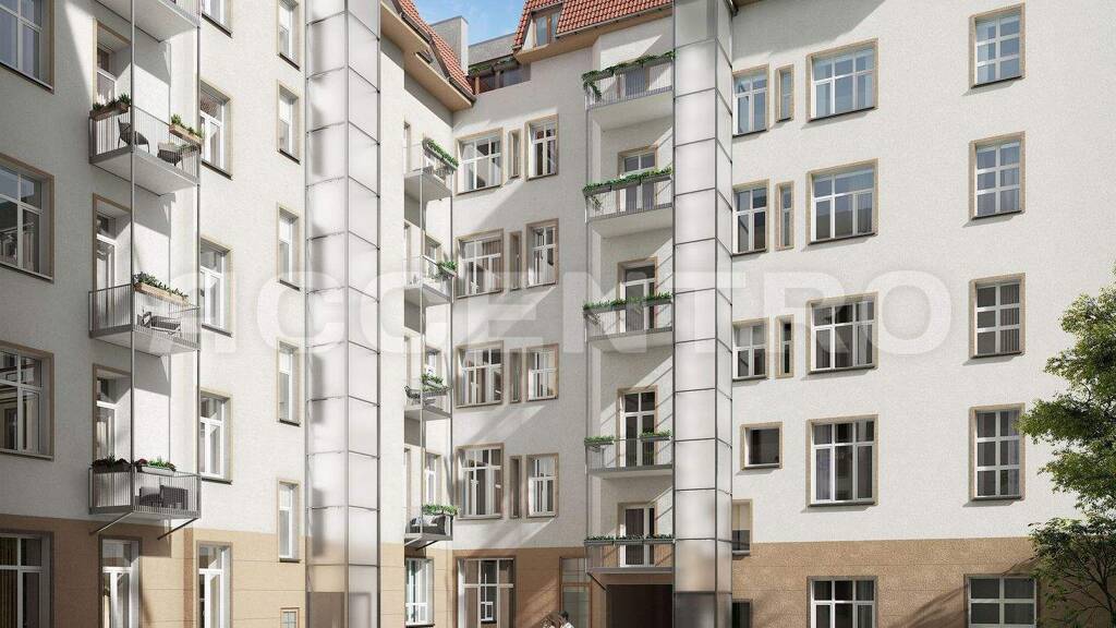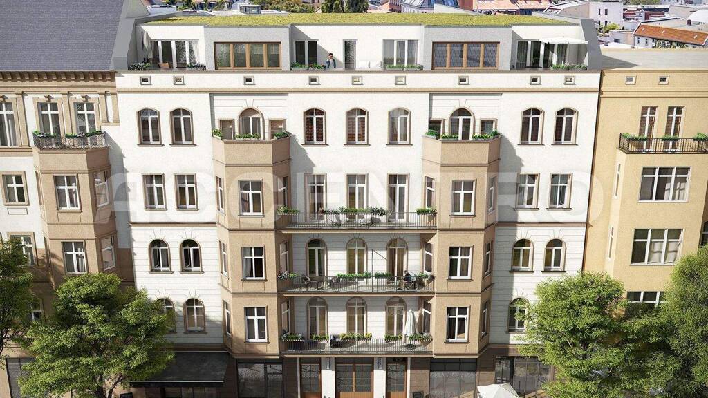 Die historische Fassade besticht durch ihre überwiegend original erhaltenen Altbau-Elemente, aufgearbeiteten Rundbogen- und Holzdoppelkasten-Fenster. Das Gebäude besteht aus einem Vorderhaus mit fünf Gewerbeeinheiten, zwei Seitenflügeln und zwei Gartenhäusern, die über sechs separate Aufgänge und zwei Innenhöfe zu erreichen sind.