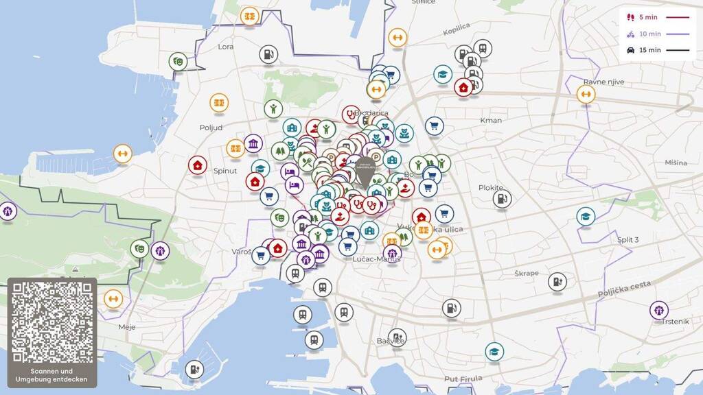 Das historische Zentrum rund um den UNESCO-geschützten Diokletianpalast bildet das kulturelle Herz der Stadt. Die Uferpromenade "Riva", zahlreiche Restaurants, Cafés und Geschäfte sowie die Nähe zu Stränden und Badebuchten machen Split zu einem der beliebtesten Orte an der kroatischen Küste.