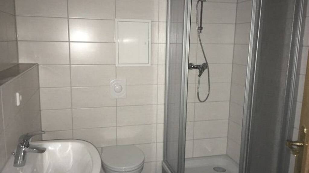 - Bodenbelag in Holzoptik - Wände Raufaser weiß - modernes Bad mit Dusche - kleine offene Küche - Bodenkammer - Hausreinigung über Firma
