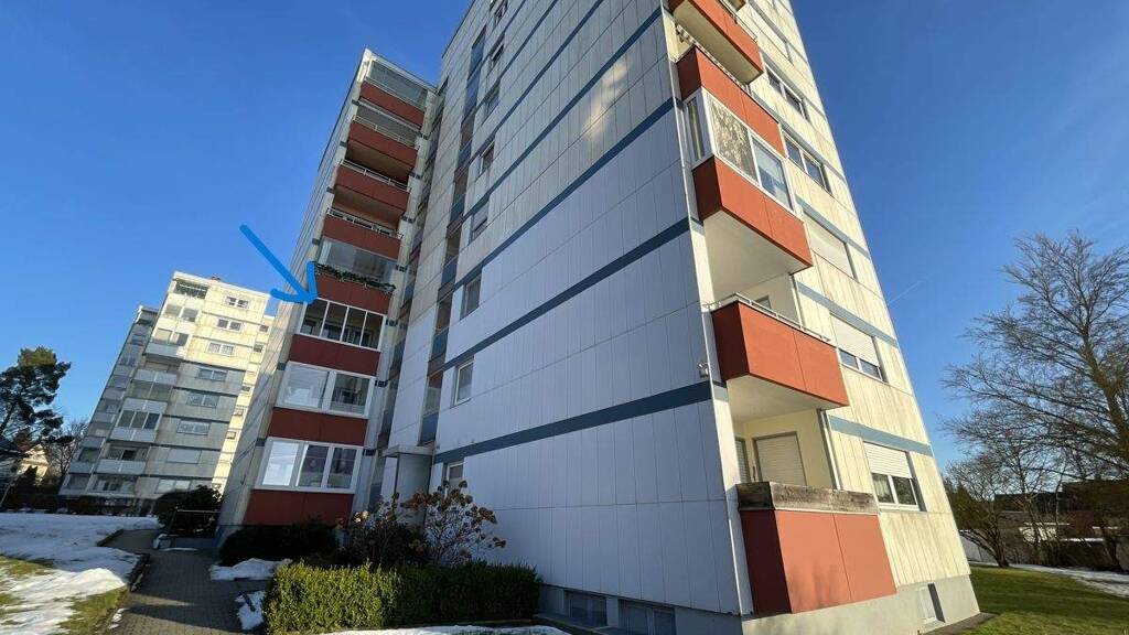 - Etagenwohnung im 2. OG - Baujahr 1972 - Wohnfläche ca. 82,83 m² - 3 Zimmer - Balkon vorhanden - Aufzug vorhanden - Hauseingang mit verglaster Eingangstür und Gegensprechanlage Klingeltableau - Kellerabteil vorhanden, mit Holztrennwänden und abschließbarer Tür - Garage vorhanden, zusätzlicher Platz für Fahrrad oder Motorrad - Zuwegung vom Garagenbereich zum Hauseingang über befestigten Gehweg - Mehrparteienhaus mit mehreren Balkonen Loggien - Außenfassade mit großformatiger Verkleidung und farblichen Akzenten