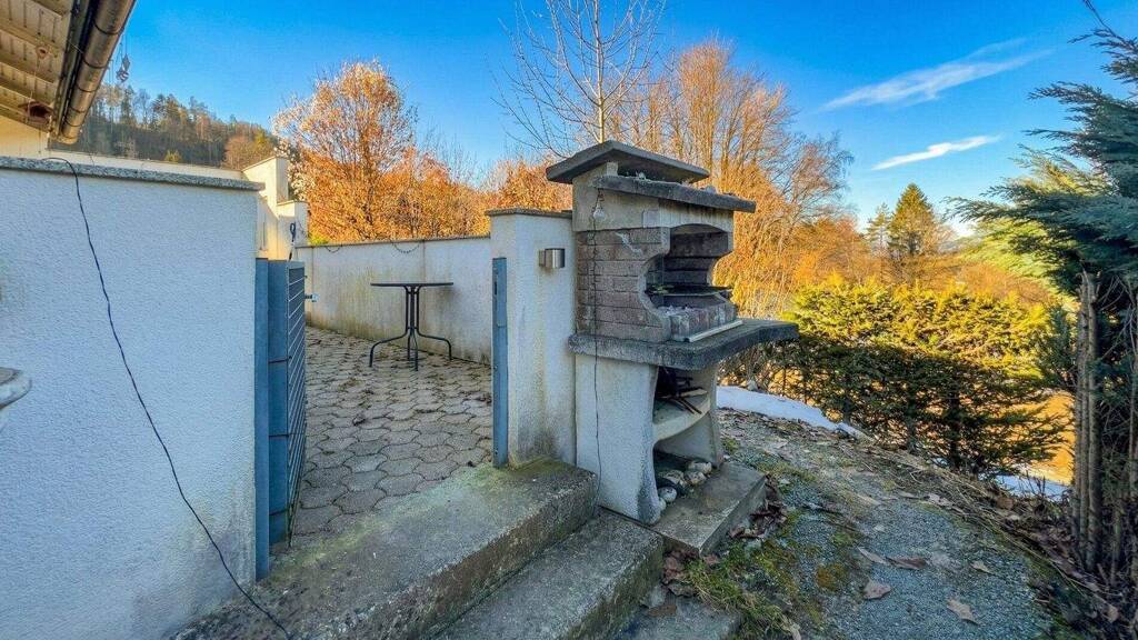 Die großzügige Westterrasse ist der Ort, an dem Sie die Kärntner Natur in ihrer ganzen Pracht erleben. Von hier aus schweift Ihr Blick über sanfte Hügel und Wiesen direkt zu den Bergen. Zudem verfügt das Objekt über einen gemauerten Grillplatz für gesellige Abende mit Familie und Freunden.