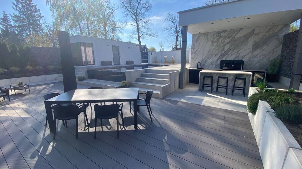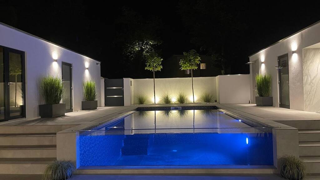 Dieses Wohn-Juwel besticht durch einen durchdachten Außenbereich mit Privatsphäre und Wellness-Effekt. Genießen Sie Entspannung pur in der verglasten Sauna oder erfrischen Sie sich im beheizten Swimmingpool mit Panoramaglas. Für kulinarische Höhepunkte sorgt die attraktive Außenküche – ideal für Grillpartys oder gemütliche Stunden im Freien. Die große Terrasse mit Loungebereich dient als grünes Wohnzimmer und erweitert das Innere des Hauses um eine neue Dimension. Sie ist der perfekte Ort, um den Tag ausklingen zu lassen. • Smart-Home-Technologie • große Bodenfliesen 1,2x1,2 m im EG • Echtholz Parkett geölt in allen Stockwerken •moderne Bäder mit großformatigen Marmor-Fliesen •bodentiefe Schüco-Fenster 3-fach verglast •Fenster mit elektr. Sonnenschutz-Screens auf der Vorderseite im EG, OG und DG, Präfa-Alufassade im OG •restliche Fenster mit elektr. Rollläden •1 Masterbad und 1 Duschbad und Gäste-WC •Alu-Eingangstür mit Fingerscan •1 Garage und 1 Abstellraum mit elektr. Sektionaltor •WPC-Terrasse im EG und DG •Alarmanlage und Wechselsprecheinrichtung mit Kameras (App-Steuerung) •beheizter Pool mit Außenküche •Sauna •BUS- und WLAN-Steuerung für Jalousien, Beleuchtung, Heizung, Video und Alarmanlage