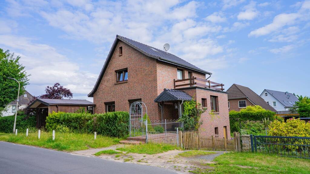 Dieses gepflegte Einfamilienhaus in idyllischer Lage bietet nicht nur Raum zum Leben, sondern auch vielseitige Möglichkeiten zur individuellen Entfaltung. Auf einer Wohnfläche von ca. 115m² und einem ca. 380 m² großen Grundstück finden Sie eine durchdachte Raumaufteilung, modernisierte Ausstattung und eine naturnahe Umgebung mit guter Infrastruktur. Das 1953 erbaute Haus wurde 2019 teilweise saniert und präsentiert sich in einem gepflegten Zustand. Neben einem überdachten Carport bietet das Grundstück zusätzliche PKW-Abstellmöglichkeiten direkt vor dem Haus. Im Garten bietet der Teich eine besonders entspannende Atmosphäre. Außerhalb des Hauses liegt eine Werkstatt mit eigenem Ein- und Ausgang. Die Immobilie erstreckt sich über drei Ebenen (Teilunterkellerung, Erdgeschoss und Dachgeschoss), die durch eine offene Holztreppe miteinander verbunden sind. Sie eignet sich ideal für kleine Familien oder Paare, die Wert auf großzügiges und dennoch gemütliches Wohnen legen. Der ausgebaute Teilkeller verfügt über zwei zusätzliche Räume, ein Badezimmer mit Dusche, Wanne und Fenster sowie einen Wasch- und Trockenraum – ideal als Hobby- oder Arbeitsbereich nutzbar. Im Erdgeschoss erwarten Sie ein einladendes Wohn- und Esszimmer mit Zugang zur Terrasse und in den gepflegten Garten mit Teich, eine moderne Einbauküche aus 2021 mit teils neuen Elektrogeräten sowie ein Gäste-WC. Das Dachgeschoss verfügt über ein weiteres Vollbad, ein Schlafzimmer und ein kleines Ankleidezimmer. Elektrische Rollläden im Wohnzimmer des Erdgeschosses sowie im Dachgeschoss sorgen für zusätzlichen Komfort und Privatsphäre. Als Fußböden sind im Haus Holzdielen, Fliesen, Teppich sowie Laminat verlegt. Ausstattung wie Kabelanschluss, Satellit, DSL, eine Alarmanlage und eine Kamera an der Haustür runden das Angebot ab. Beheizt wird das Haus über eine Gas-Zentralheizung aus dem Jahr 2019. Die Fenster sind überwiegend aus Kunststoff.