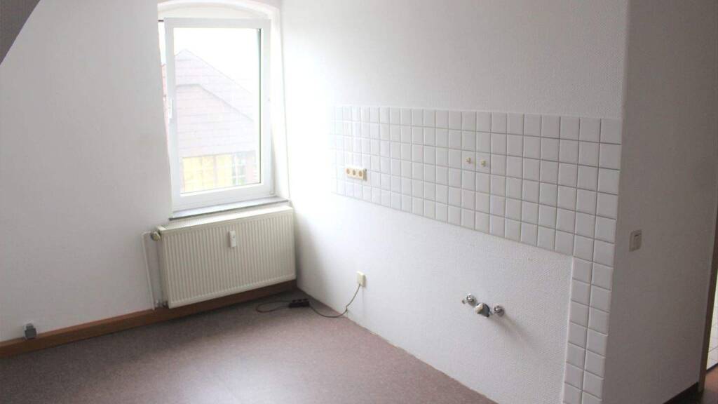 Die Wohnung liegt im Dachgeschoss und besteht aus 1 Schlafzimmer, 1 Wohnzimmer, der Küche, dem Badezimmer, 1 Abstellraum und dem Flur.