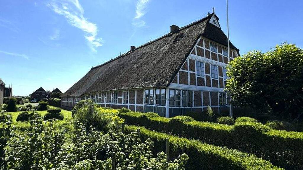 Dach: Krüppelwalmdach mit Reeteindeckung (zwischen den Jahren 1992-2005 wurde die westliche Dachfläche erneuert)