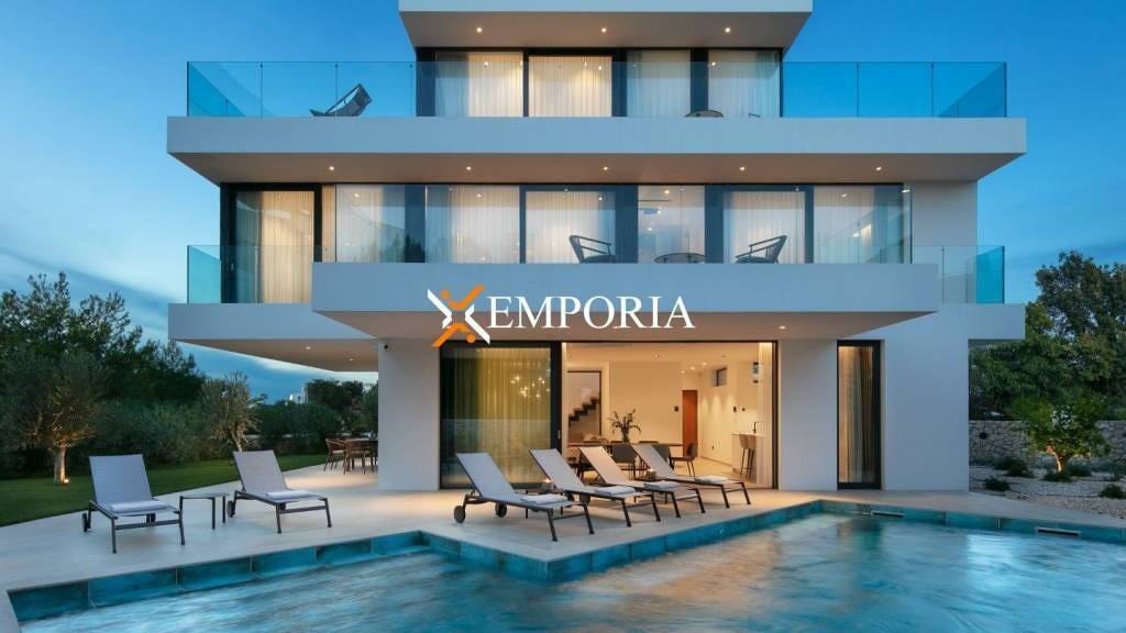 Zum Verkauf steht ein Luxushaus in Sukošan, in zweiter Reihe zum Meer, ideal für komfortables Wohnen oder touristische Zwecke. Dieses modernisierte Haus bietet erstklassiges Design, einen Pool, ein Smart-Home-System, einen Aufzug und einen wunderschönen Meerblick. Die Villa befindet sich auf einem Grundstück von 496 m², die Gesamt-Nutzfläche beträgt 497,81 m².