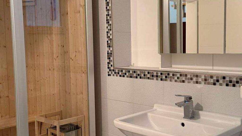 Im ersten OG befinden sich zwei Zimmer. Das Schlafzimmer verfügt über eine Ankleide und ist mit dem wunderschönen Badezimmer verbunden.