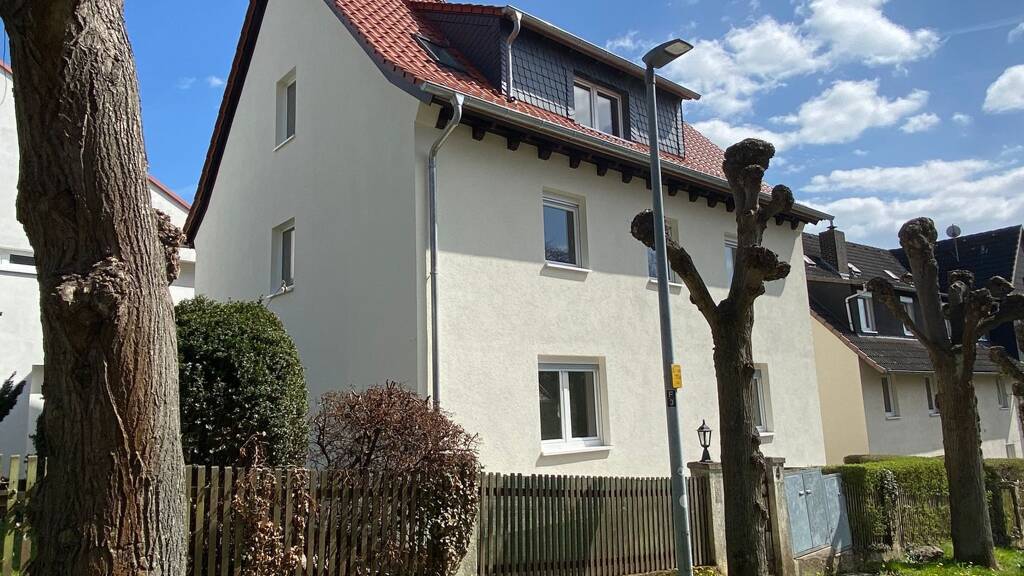 Die Erdgeschosswohnung mit ca. 90 m² Wohnfläche liegt in einem Mehrfamilienhaus mit drei Wohneinheiten. Das Haus wurde 2020/2021 kernsaniert. Die helle und einladende Wohnung ist mit modernem Designboden, weißer Raufasertapete, weißen Türen und Kunst/Iso Fenstern ausgestattet. An den Fenstern sind Außenrollläden angebracht. Das Tageslichtbad ist deckenhoch gefliest, verfügt über eine ebenerdige Dusche und über eine Handtuchheizung. Die Küche ist mit einem hellen Fliesenspiegel versehen. Für genügend Stauraum sorgt ein eigener Kellerraum und ein gemeinschaftlicher Fahrradkeller.