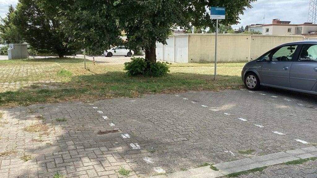 Zur Vermietung stehen mehrere Außenstellplätze. Die Stellplätze liegen in einem großzügigen Areal, eingegrenzt von Garagen und einem Hochhaus.