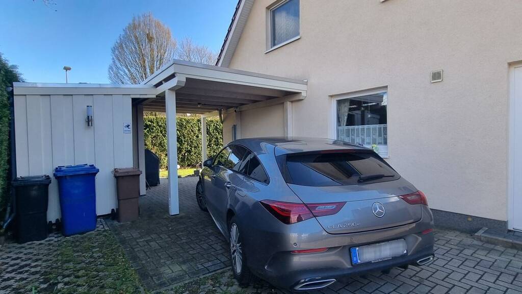 Der gepflegte Garten bietet viel Potenzial für Gartenaktivitäten und erstreckt sich vollständig um die Doppelhaushälfte. Weiterhin stehen Ihnen ein Schuppen und ein Carport zur Verfügung.