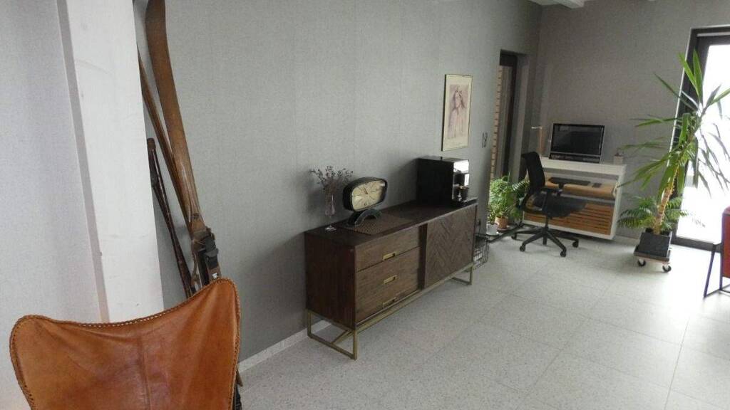 Durch verschiedene, energieeffiziente Lichtsysteme wurde ein stimmungsvolles Beleuchtungskonzept geschaffen, das den Räumen zu jeder Tageszeit eine besondere Atmosphäre verleiht. Eine elegante Wendeltreppe verbindet das Erdgeschoss mit der oberen Etage und verleiht dem Haus zusätzlich einen architektonischen Akzent. Im Obergeschoss befinden sich ein gemütliches Schlafzimmer mit hochwertigem Echtholzboden sowie ein stilvoll gestaltetes Badezimmer. Die Kombination aus natürlichen Materialien und moderner Ausstattung sorgt auch hier für ein besonders angenehmes Wohngefühl.