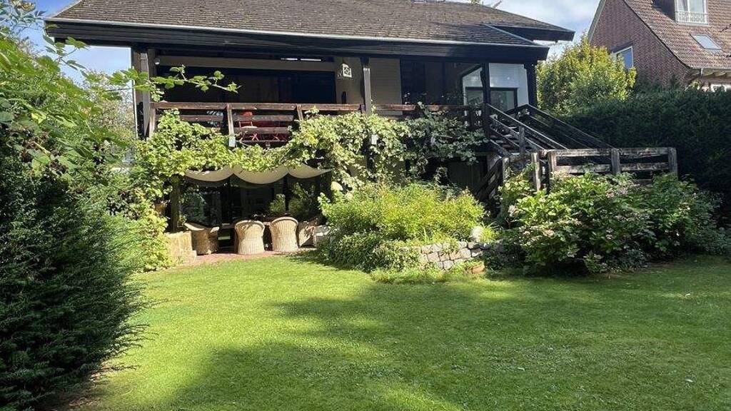 Der Garten ist liebevoll angelegt und bietet einen direkten Zugang zur Garage. Ein kleiner Teich und verschiedene Sitzplätze, auf der überdachten Terrasse, dem Balkon und im Garten, laden zu entspannten Momenten im Freien ein. Einfach die Seele baumeln lassen!