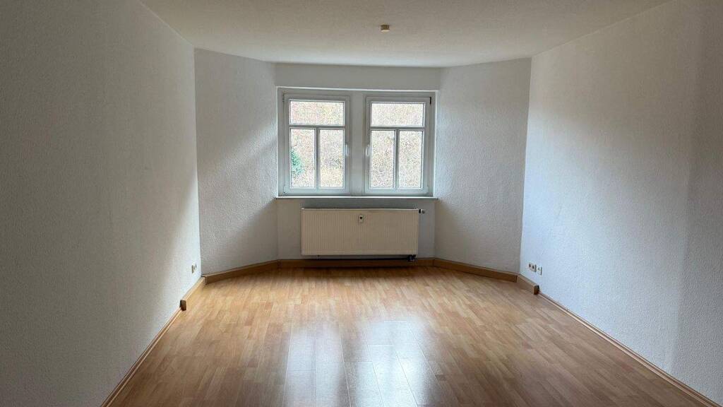 Das Wohnzimmer ist durch die Fenster schön hell, von dort hat man einen schönen Blick auf die Burg.