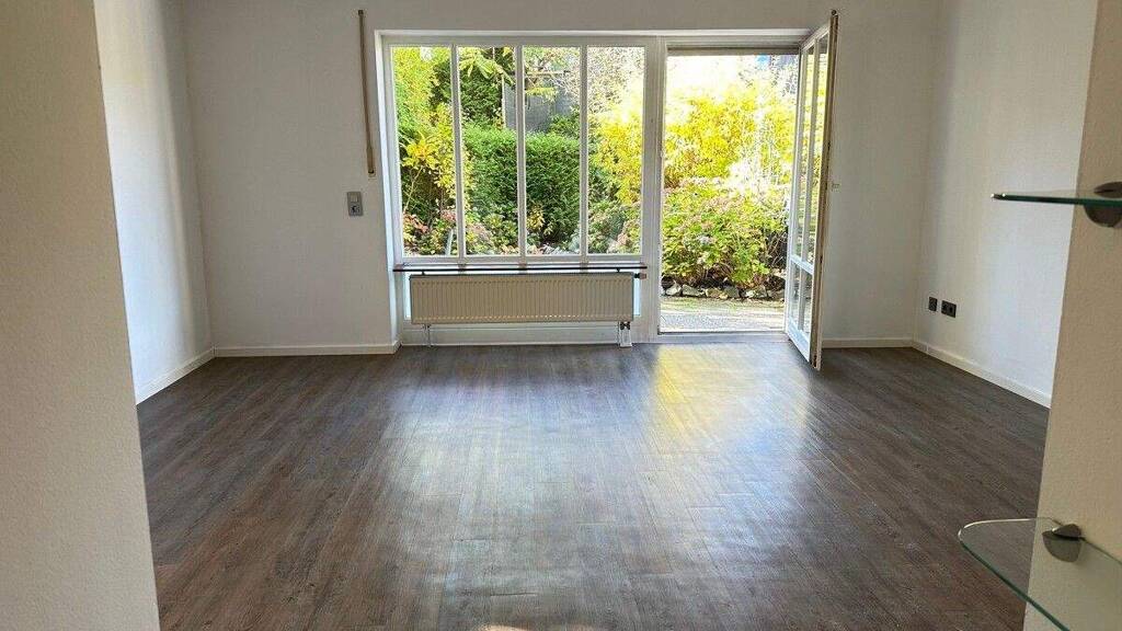 AUFTEILUNG: ca. 24 m2 Wohn-/Schlafraum mit groĂźer Fensterfront u. Zugang zur Terrasse + Garten, sep. KĂĽche mit neuwertiger EinbaukĂĽche, Bad mit Dusche, Waschbecken, WC u. WaschmaschinenanschluĂź, Diele