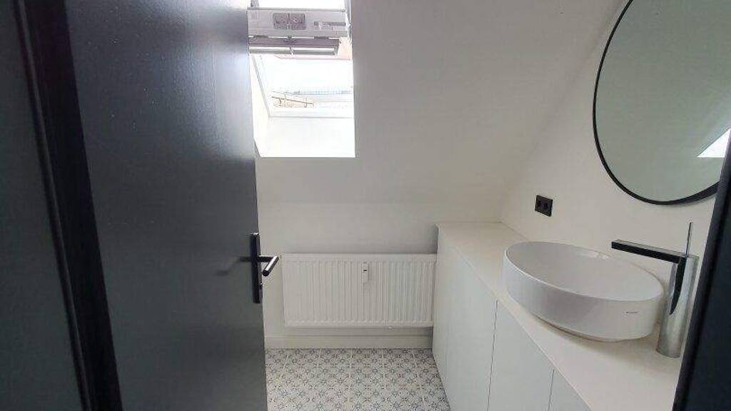 Der durchdachte Grundriss umfasst ein lichtdurchflutetes Zimmer, das ausreichend Platz für individuelle Wohnideen bietet. Die hochwertige Einbauküche ist perfekt in den Wohnraum integriert und überzeugt durch funktionales und modernes Design. Die Kombination aus eleganten Fliesen und warmem Parkett schafft eine einladende Atmosphäre.