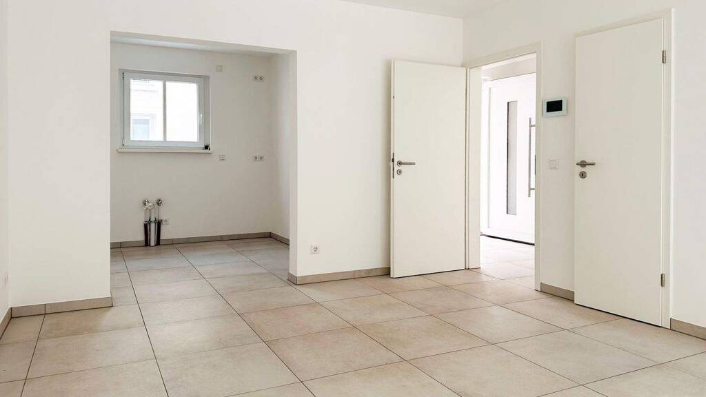 Alle Wohnräume sind mit einer Fußbodenheizung ausgestattet. Im Erdgeschoss sind moderne Fliesen verlegt, während Echtholzparkett in den oberen Geschossen das Raumgefühl aufwertet.