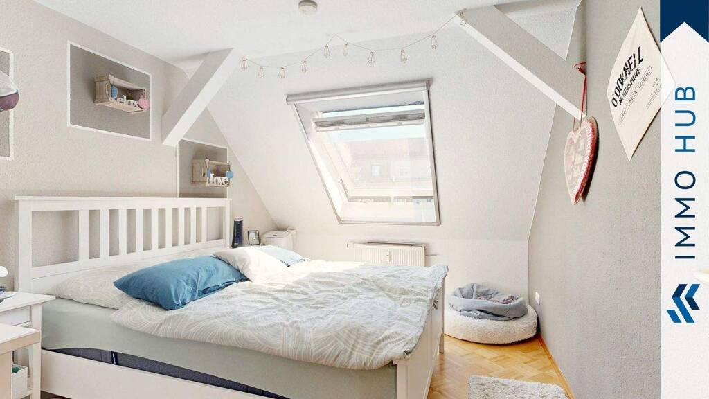 Ihre neue Eigentumswohnung befindet sich im Dachgeschoss eines im Jahre 1937 errichteten und 2002 sanierten Mehrfamilienhauses. Sie erreichen die Wohnung bequem über ein sehr gepflegtes Treppenhaus. In der Wohnung angekommen werden Sie von einem geräumigen Flur in Empfang genommen. Hier befindet sich zuerst das geräumigeTageslichtbad mit einem Waschtisch, Dusche und Wanne. Weiterhin erreichen Sie über den Flur das erste Schlafzimmer, Küche sowie das geräumige Wohnzimmer. Dieses wiederum ist gleichzeitig das Highlight der Wohnung. Geräumig und offen gestaltet, mit einer großen Fensterfront herrscht hier ein angenehmer Flair mit viel Tageslicht. Den nach Osten ausgerichteten Balkon erreichen Sie ebenfalls über das Wohnzimmer. Dieser lädt zum Verweilen ein und verspricht in den Sommermonaten entspannte Abende mit Blick in einen rötlich gefärbten Abendhimmel. Die Küche ist mit einer Einbauküche ausgestattet und bereits im Kaufpreis inbegriffen. Die untere Etage umfasst eine Wohnfläche von ca. 58 m².