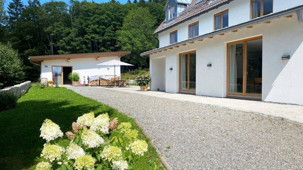 + Der weitläufige Garten mit direktem Zugang zum Nationalpark und Panoramablick auf die Bayerischen Berge bietet Ruhe, Rückzug und Inspiration - perfekt für private wie auch geschäftliche Nutzung.