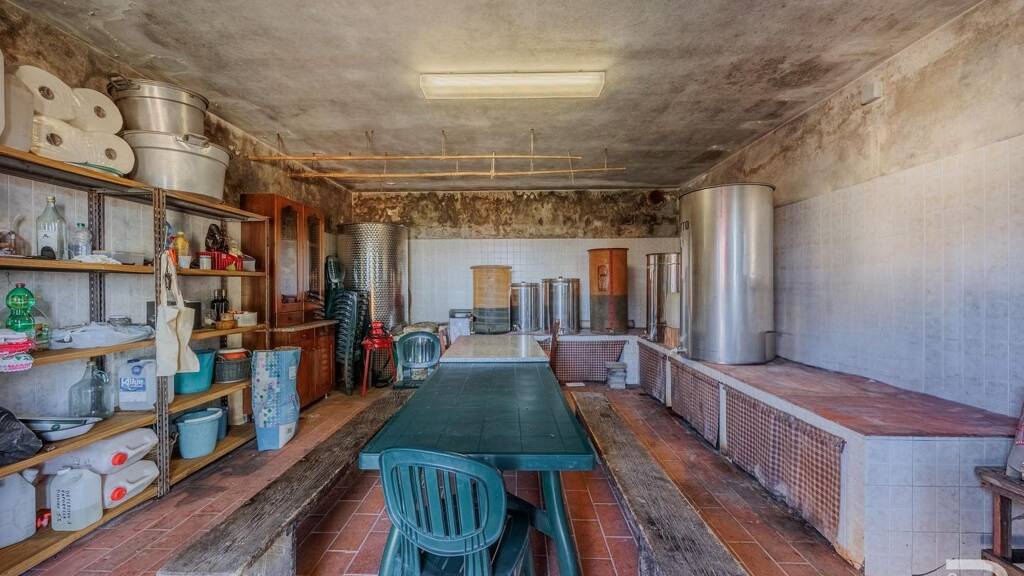 Das Hauptgebäude bietet bereits eine solide Basis für den laufenden Betrieb: Zwei eigenständige Wohnungen, ein großzügiger Saal mit professioneller Küche für Bewirtung oder Veranstaltungen sowie sieben Gästezimmer, jeweils mit eigenem Bad, stehen zur Verfügung. Die Struktur ist in gutem Zustand, erfordert jedoch leichte Renovierungsarbeiten, um sie auf ein modernes Niveau zu bringen und den authentischen Charme mit zeitgemäßem Komfort zu verbinden.