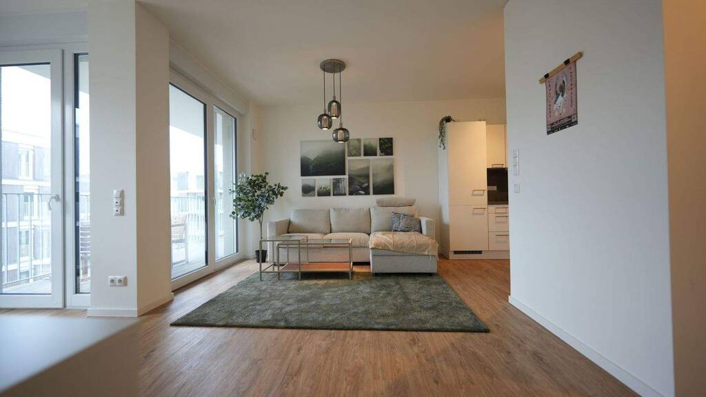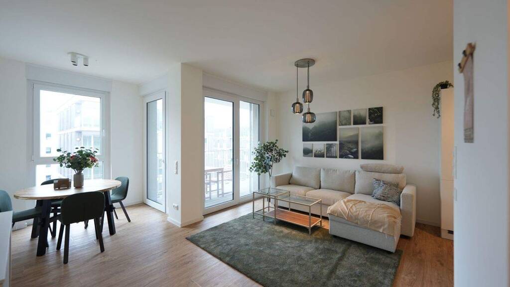 Die Wohnungen überzeugen durch durchdachte Grundrisse, ein offenes Raumgefühl und großzügige Fensterflächen, die für eine ausgezeichnete natürliche Belichtung sorgen. Bodentiefe Fenster öffnen den Blick nach außen und ermöglichen den direkten Zugang zu den Balkonen oder Loggien, die den Wohnraum angenehm erweitern und zum Verweilen einladen.