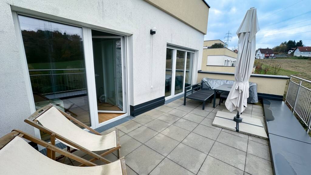 Die Terrasse mit rund 20,28 m² lädt zum Entspannen und Genießen ein und erweitert den Wohnbereich ideal ins Freie. Ein Carport sowie ein Kellerersatzraum bieten zusätzlichen Komfort.