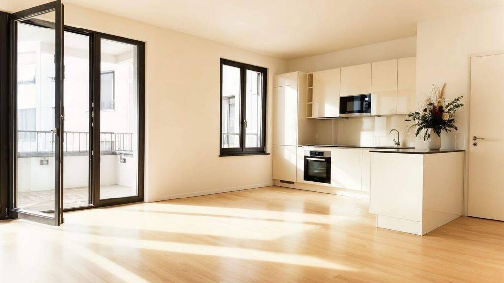 Der offene Wohn- und Essbereich bildet das Herzstück der Wohnung - mit fließendem Übergang zur sonnigen Südwestterrasse, die an warmen Tagen den Wohnraum ins Freie erweitert.