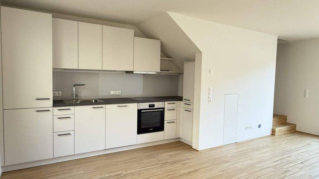 Im Erdgeschoss erwartet Sie ein offener Wohn-Essbereich, der mit hochwertigem Parkettboden ausgestattet ist. Eine moderne Einbauküche lädt zum Kochen und Verweilen ein. Ein Gäste-WC sowie eine praktische Abstellmöglichkeit unter der Stiege runden das Angebot auf dieser Ebene ab.