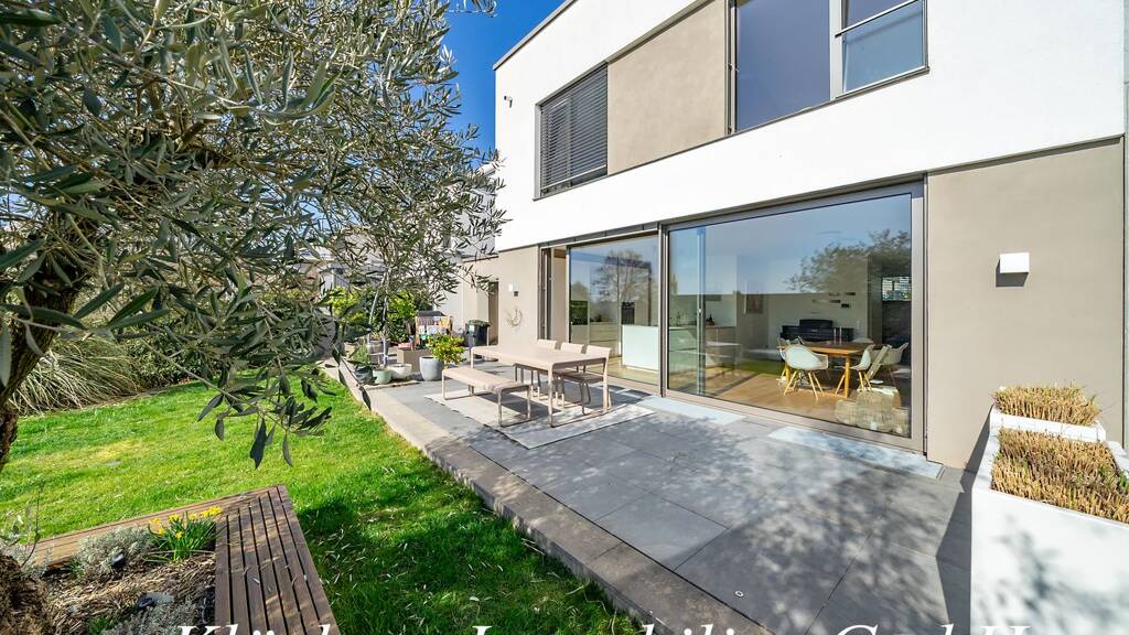 Ausstattungsmerkmale: - individuell schreinergefertigte Maßeinbauten in sämtlichen Etagen - Hochwertige Küche mit Nebenküche und zusätzlichem Stauraum und zahlreichen Extras - Designer Holzkamin im Wohnraum - Sichtbetonoptik Wände im Wohnbereich - hochwertige Steinwaschbecken im Gäste WC - Klafs Glassauna im Elternbad - Fitnessraum im Loft Charakter - Stoßdämpfende Bodenmatten im Fitnessraum - Luft-Wärmepumpe von Viessmann + PV Anlage - Kalk- Filteranlage - Fußbodenheizung im gesamten Haus - Raffstores in allen Stockwerken (Somfy-System) - Plissee an ausgewählten Fenstern - zentrales Alarmsystem für Fenster und Türen - Aluminiumfenster - Wallbox in Garage - programmierbare Bewässerungsanlage von Gardena im Garten - überdachter Carport