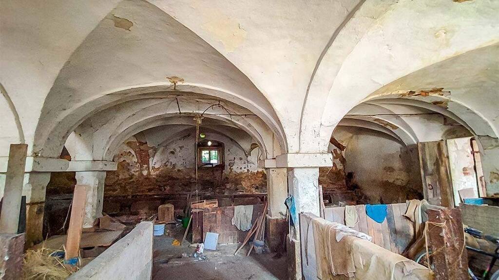 Denkmalgeschütztes Wohnstallhaus mit Kreuzgewölbe im Stallbereich. Baujahr um 1850. Ehemals Ofenheizung. Keine nutzbare Sanitärausstattung vorhanden. Holzfenster, 2014 eingebaut und Holztüren älterer Bauart. Das Dach mit Ziegeleindeckung ist schadhaft, Feuchtigkeitsschäden vorhanden. Putz-/Fachwerkfassade mit Schäden. Insgesamt allumfassender Sanierungsbedarf.