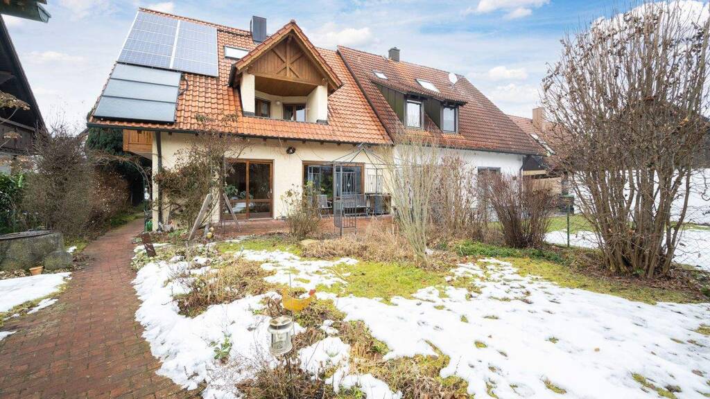 Diese liebevoll gepflegte Doppelhaushälfte ist ein echtes Raumwunder und bietet alles, was sich eine Familie für die eigenen vier Wände wünscht. Das Haus beeindruckt durch seine großzügige Raumaufteilung, hellen Wohnbereich und eine solide Ausstattung. Beim Betreten empfängt Sie ein freundlicher, heller Eingangsbereich mit Platz für einen kleinen Einbauschrank. Zu Ihrer linken Seite befindet sich das geräumige Büro, das Gäste-WC sowie das Tageslichtbadezimmer mit wärmespendender Fußbodenheizung. Rechter Hand gelangen Sie in die Küche mit direktem Durchgang in das gemütliche Esszimmer. Abgerundet wird das Erdgeschoss mit dem weitausladenden Wohnzimmer. Hier könnte zusätzlich mit einem Kachelofen nachgerüstet werden. Über die weitläufige Treppe gelangen Sie in das erste Obergeschoss. Hier finden die beiden Kinderzimmer, das weitausladende Elternschlafzimmer sowie das Badezimmer samt Badewanne Ihren Platz. Die überdachte Loggia können Sie über das Kinderzimmer sowie über das Elternschlafzimmer betreten. Ein weiterer Balkon ist über die beiden Kinderzimmer ebenfalls betretbar. Nachträglich wurde der Dachspitz ausgebaut. Dieser überzeugt ebenfalls mit seiner gelungenen Aufteilung. Abgerundet wird dies mit einem weiteren Badezimmer. Das Kellergeschoss besticht durch seine Abstellmöglichkeiten. Hier befindet sich ein geräumiger Hobbyraum, ein kleines Handwerkerzimmer, der Heizraum sowie der Waschraum.