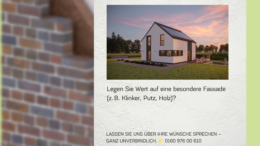 Sonstiges Vereinbare einen persönlichen Beratungstermin, um über Deinen Haustraum und das angebotene Objekt zu sprechen.