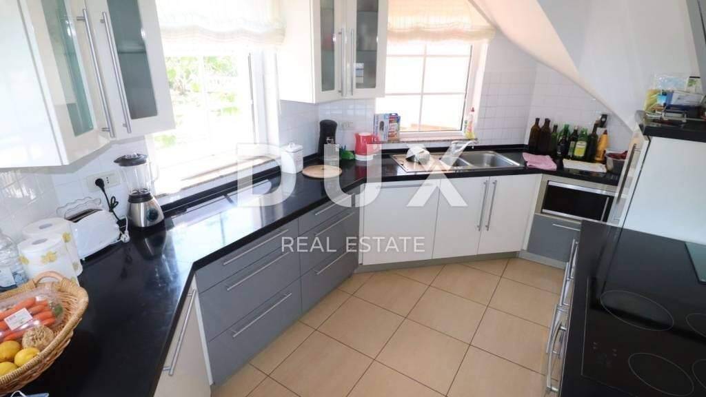 Die Villa liegt in einer Sackgasse auf einem Hügel, umgeben von Grün und mit Blick auf das Meer. Es wurde 2008 erbaut und besteht aus einem Erdgeschoss und einem Obergeschoss. Das Erdgeschoss ist als Fitnessraum mit Sauna konzipiert und verfügt zudem über ein Schlafzimmer mit eigenem Bad und WC. Der erste Stock besteht aus drei Schlafzimmern, jedes mit eigenem Bad mit Toilette, einem Wohnzimmer mit großen Glaswänden, die einen wunderschönen Blick auf das Meer bieten, und einer Küche. Außerdem können Sie vom ersten Stock aus auf die Galerie in der Kuppel gehen, von der aus Sie einen Panoramablick haben. Die Villa verfügt über eine eigene Garage, in der zwei Autos Platz finden. Im Garten befindet sich ein Swimmingpool, der ebenfalls einen Blick auf das Meer bietet. Das Heizen und Kühlen erfolgt über eine Wärmepumpe und jeder Raum verfügt über eine eigene Einheit. Tolle Gelegenheit in ruhiger Lage! Die in der Kvarner Bucht in der nördlichen Adria gelegene Insel Rab ist ein wahres Paradies für Liebhaber der Natur und authentischer Inselatmosphäre. Seine zeitlose Schönheit wurde bereits in der Antike von den Römern erkannt, die ihn Felix Arba oder Happy Rab nannten. Auch heute noch zieht die wunderbare Natur der Insel Besucher an von den zahlreichen Sandstränden auf der Halbinsel Lopar und den atemberaubenden versteckten Buchten auf der Halbinsel Kalifront bis hin zu den erhaltenen Steineichenwäldern, fruchtbaren Tälern und dem felsigen Berggipfel Kamenjak, der im Winter vor dem Bora-Wind schützt.
