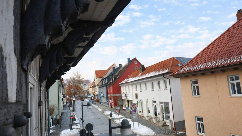 Leben und investieren in einem architektonischen Juwel! Diese außergewöhnliche 3-Zimmer-Wohnung befindet sich im historischen Fridolinhaus im Herzen von Bad Rodach - einem der bekanntesten Baudenkmäler der Region. Das imposante Fachwerkhaus mit seinen charakteristischen Türmchen, dem reich verzierten Zwerchhaus und den liebevoll restaurierten Details zieht schon von außen jeden Blick auf sich und erzählt ein Stück Stadtgeschichte.