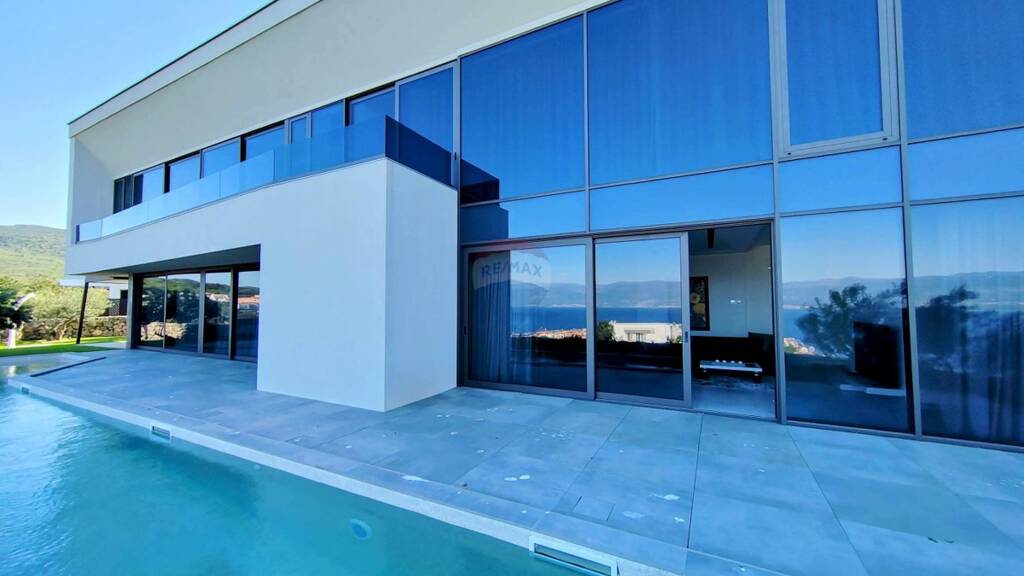 Auf einem kleinen Hügel, oberhalb der charmanten, alten Städtchen Vrbnik thront diese einzigartige neue Villa.