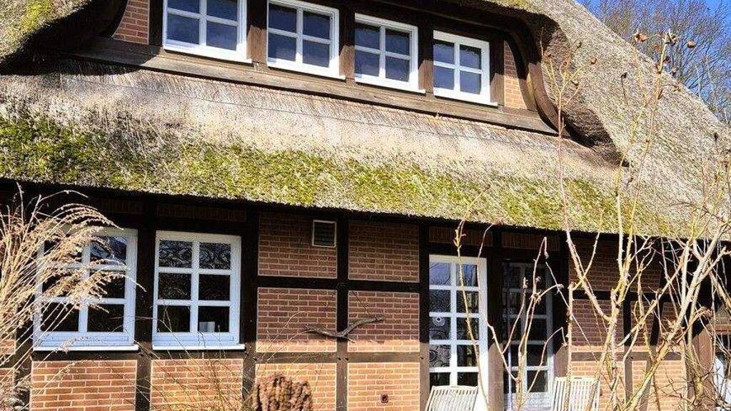 Das komplett unterkellerte Fachwerkhaus wurde im Jahr 1995 mit traditioneller Reetdeckung errichtet, hat ca. 285m² Wohnfläche und erstreckt sich über drei Etagen. Es wurde für eine große Familie und / oder Homeoffice konzipiert. Hinzu kommt ein ausbaufähiger Dachboden und das Nebengebäude.