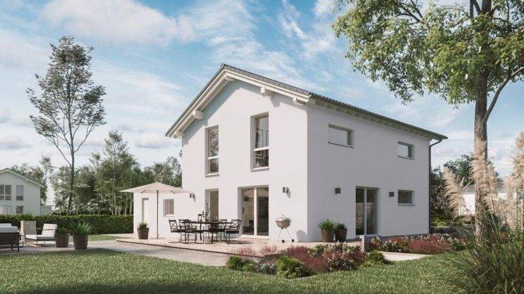 + Zimmermannsmäßiger Dachstuhl aus Konstruktionsvollholz + Dacheindeckung mit Betondachsteinen von Braas + Hochwertiger Kunstharz-Außenputz für eine langlebige Fassade + Vollständige Badausstattung von Villeroy & Boch mit Badewanne und flacher Duschwanne + Fliesen von Villeroy & Boch in Bad und WC + Haustür mit 3-fach-Sicherheitsverriegelung + Erstklassige Innentüren der Marke Herholz + Fenster mit 3-Scheiben-Wärmeschutzverglasung und Rollläden + Stahl-Holz-Treppe mit individueller Farbgestaltungsmöglichkeit + Elektroausstattung inklusive Klingelanlage + Rauchmelder für Ihre Sicherheit + Alle Leistungen aus einer Hand + Alle Planungs- und Architektenleistungen + Einsatz regionaler Handwerksbetriebe + Individuelle Anpassung auf Ihre Bedürfnisse + Auf Wunsch mit Keller erhältlich + Auf Wunsch mit weiteren Energietechniken erhältlich