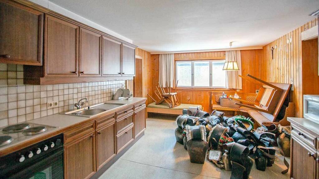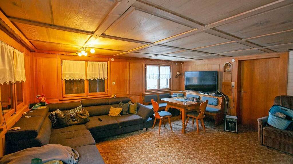 Es handelt sich bei dem ehemals größten Bauernhaus im Dorf um einen Altbau in Vollholzbauweise mit 2 Wohnungen mit ca. 350 m² im Erd- und Obergeschoß mit Küchen, Wohnzimmer, mehreren Schlafzimmern, 2 Bädern, traditionelle Holzvertäfelungen. Dachgeschoß und Keller sind nicht ausgebaut. Eine wesentliche Vergrößerung durch einen Anbau ist möglich.
