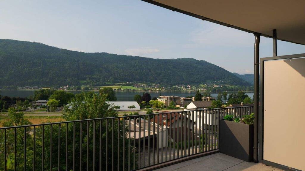 DIESE EXKLUSIVE 2-ZIMMER-TERRASSENWOHNUNG BIETET EIN WOHNERLEBNIS DER EXTRAKLASSE. GENIESSEN SIE DEN SPEKTAKULÄREN BLICK AUF DEN OSSIACHER SEE UND DAS BEEINDRUCKENDE PANORAMA DER UMLIEGENDEN BERGE, DIREKT VON IHRER GROSSZÜGIGEN TERRASSE AUS.